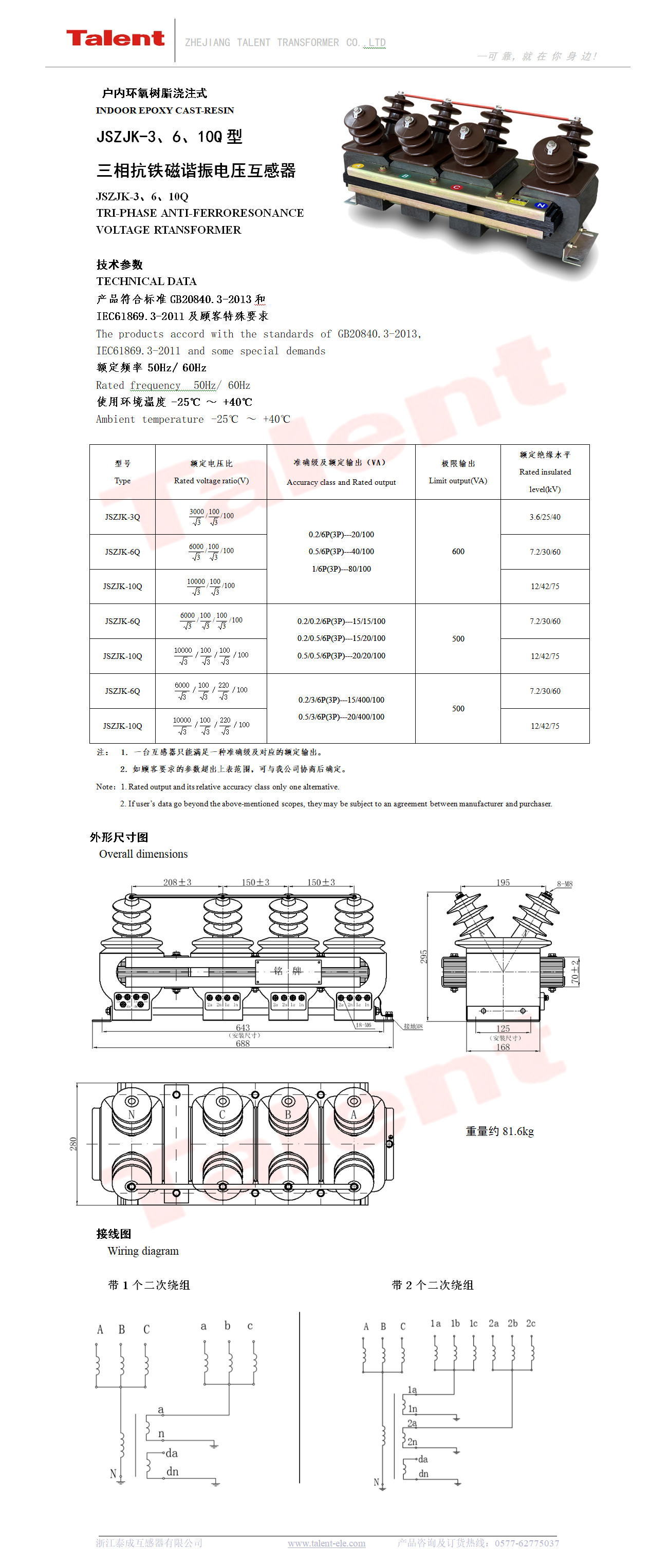 JSZJK-3、6、10Q三相抗磁鐵諧振電壓互感器