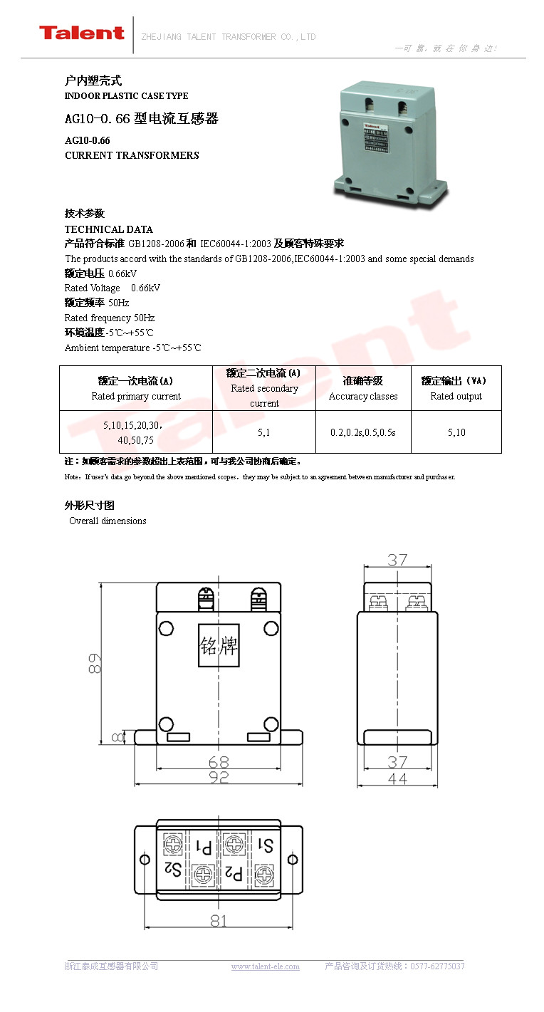 ≦0.72kV戶內(nèi)電流互感器
