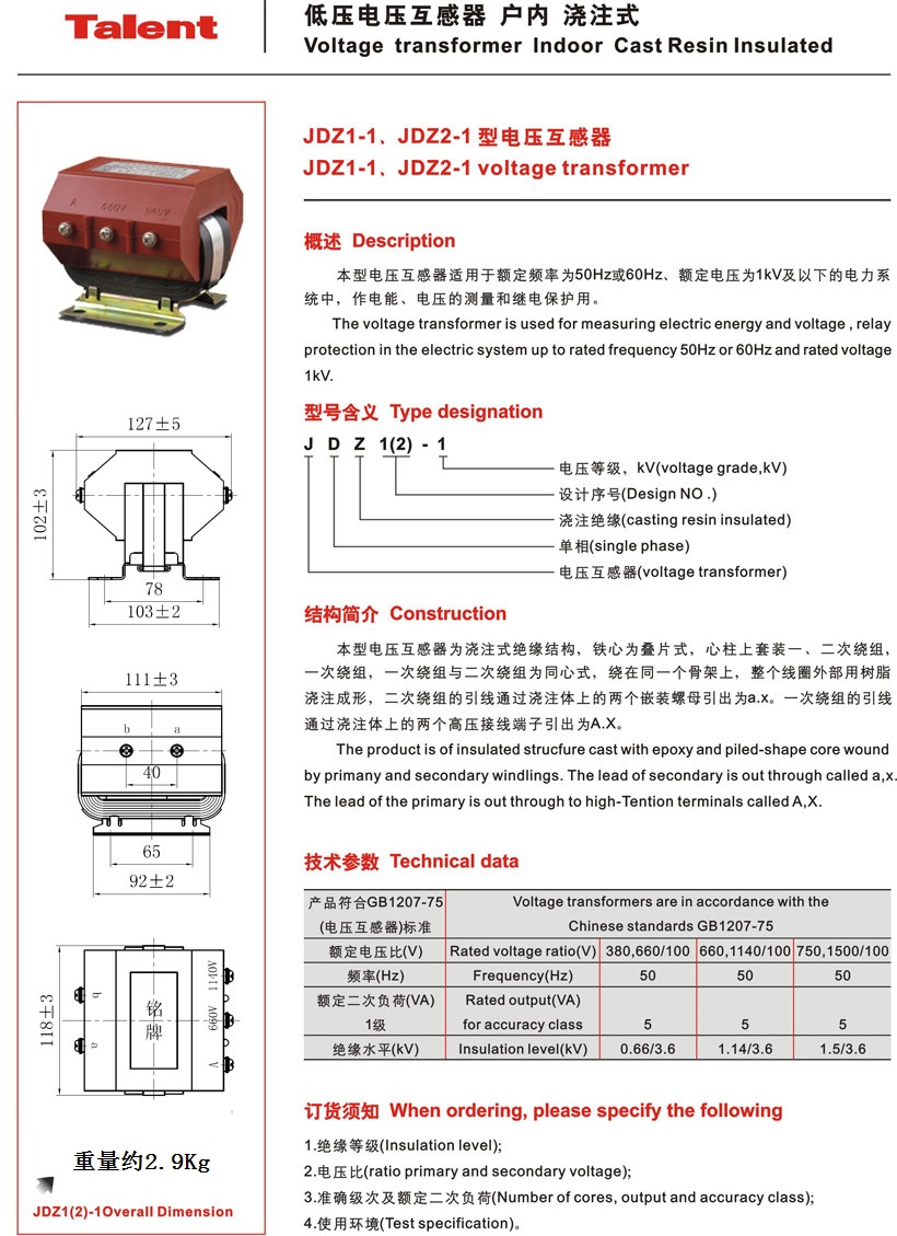 ≦0.72kV 戶內(nèi)電壓互感器