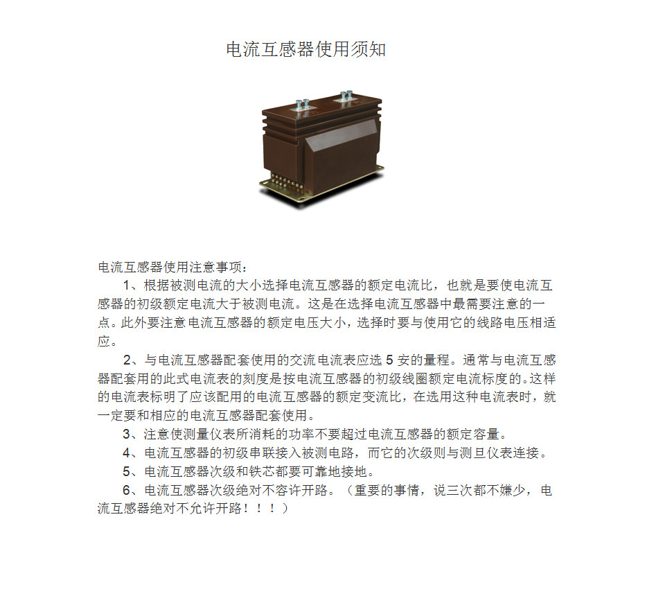 電流互感器使用須知