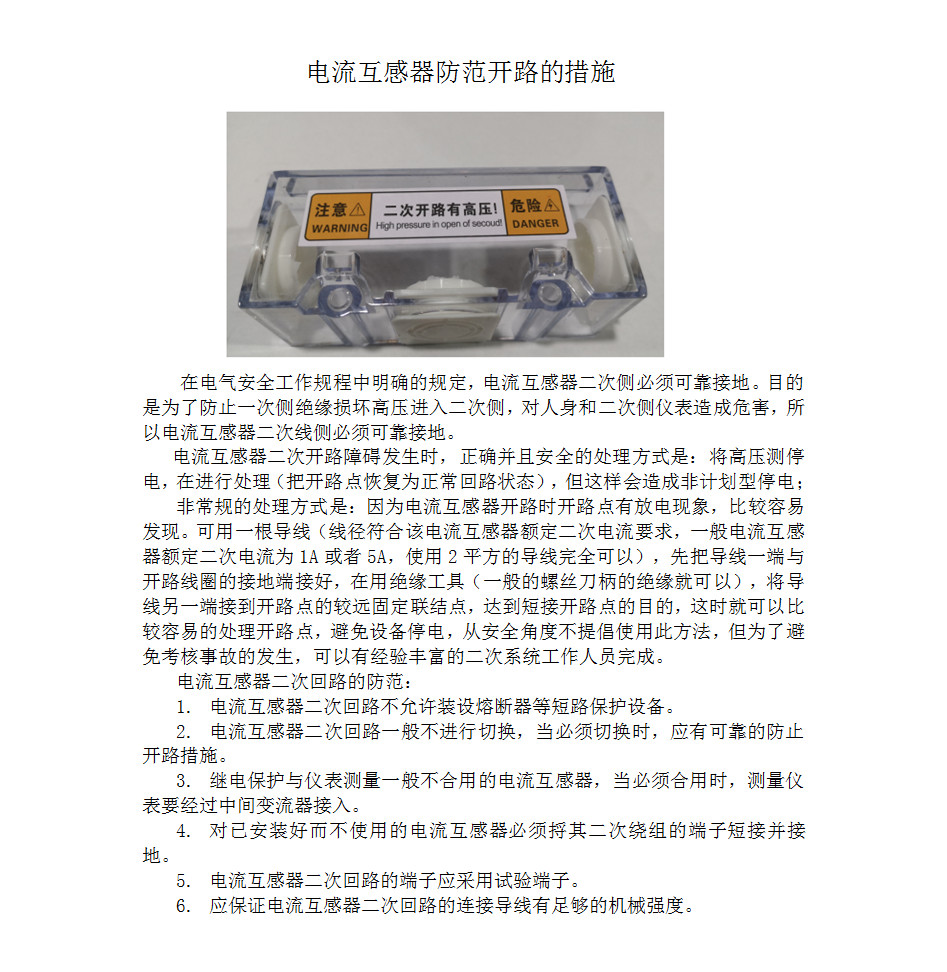 電流互感器防范開路的措施