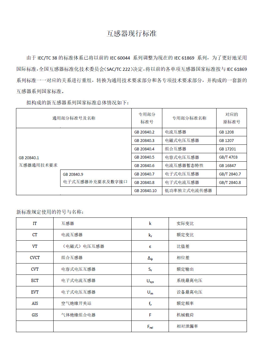 互感器現(xiàn)行標(biāo)準(zhǔn)